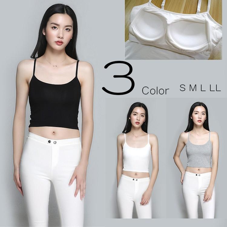 レディース 無地 カップ付き ショート丈 ボディフィット キャミソール ブラトップ インナー 肌着 ブラック グレー ホワイト Yto Ytolive 通販 Yahoo ショッピング