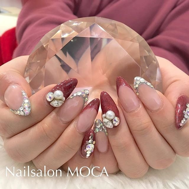 ハンド フレンチ ラメ ビジュー ロング Homesalon Mnail Minamiのネイルデザイン No ネイルブック